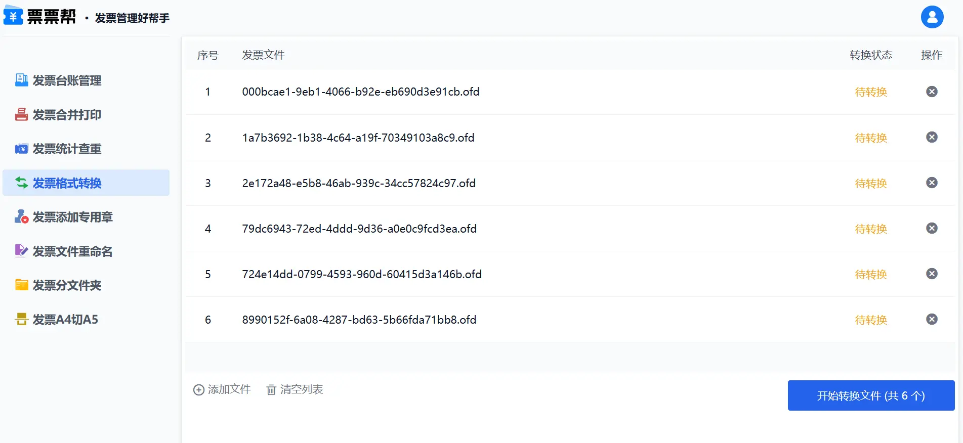 批量转换:对于需要批量处理OFD文件的用户,票票帮提供了批量转换功能,极大地提高了工作效率。一次性处理多个文件,不必手动一个个转换,节省时间。