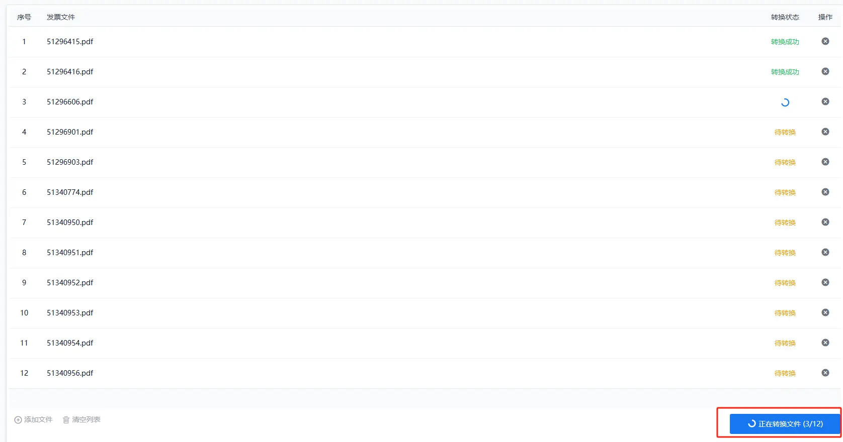 点击“上传PDF文件”按钮,选择您需要转换的PDF发票文件。