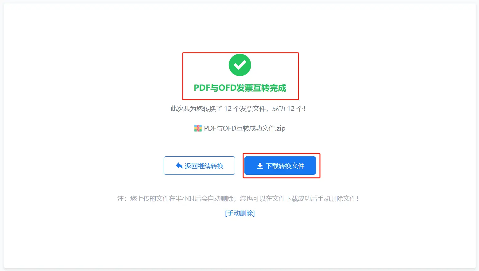 等待转换完成,点击“下载OFD文件”按钮,即可将转换后的OFD文件保存到本地。
