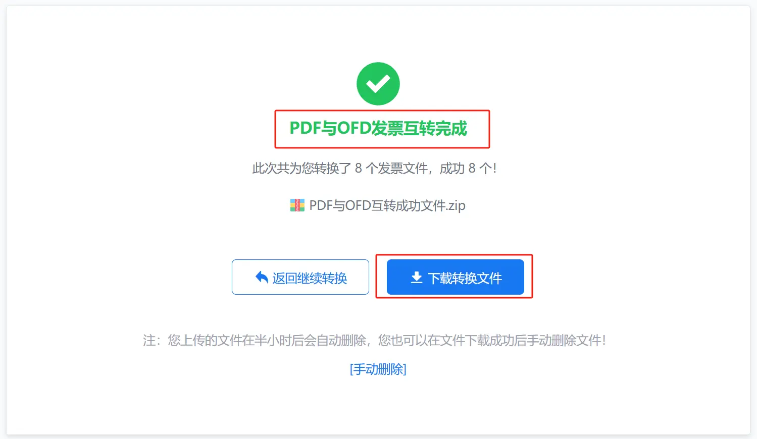 转换完成后,点击“下载”按钮,即可将转换后的 OFD 格式发票文件保存到本地计算机。