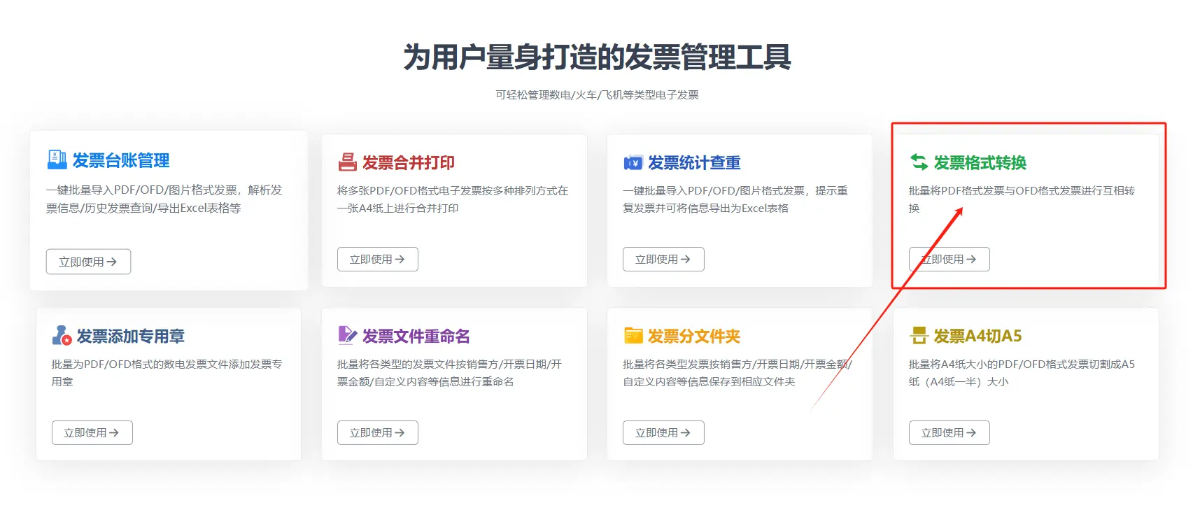 打开浏览器,进入【票票帮官网】,找到首页上的【发票格式转换】转换入口。