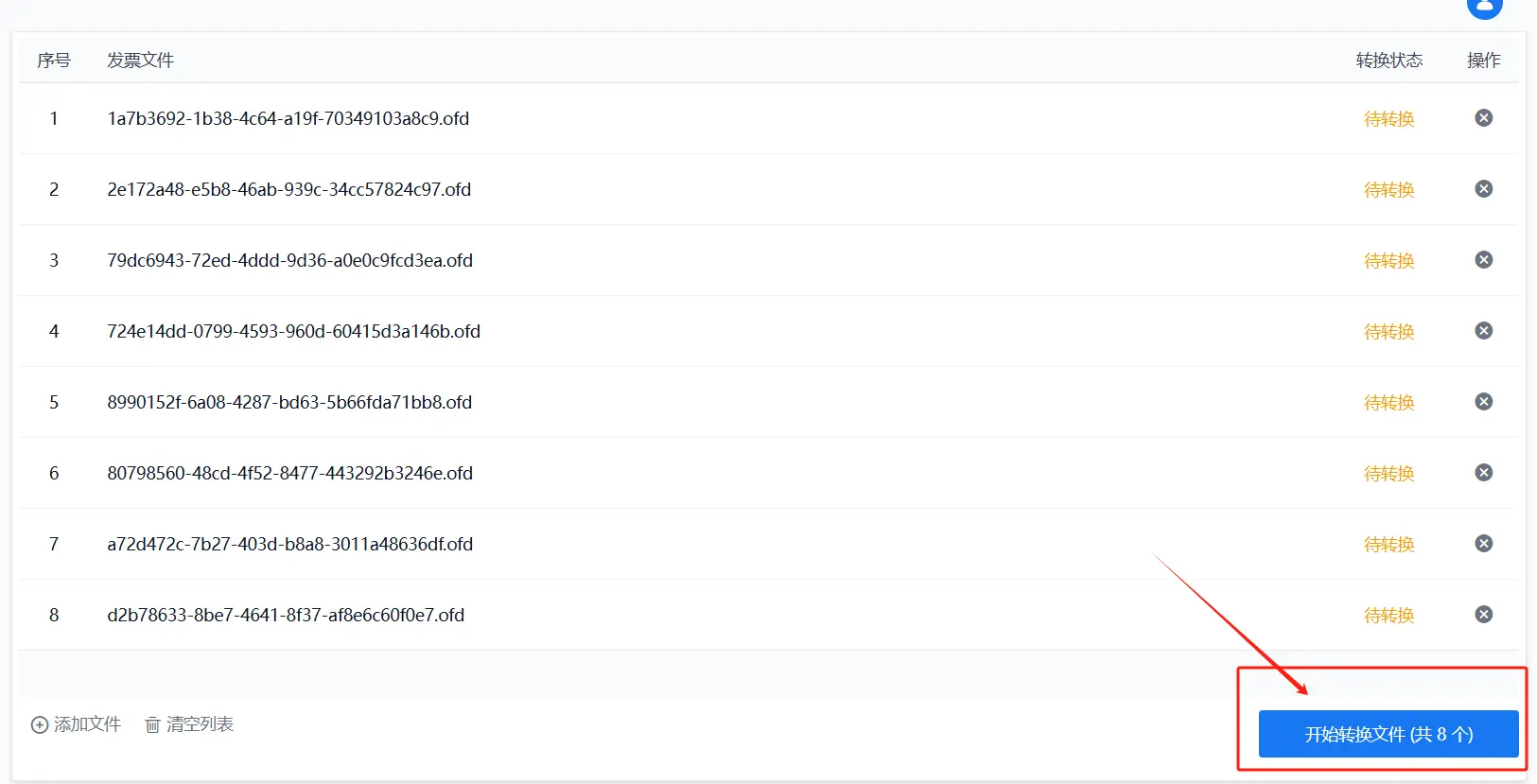 开始转换:上传完成后,点击“开始转换”按钮,系统将自动进行文件转换。