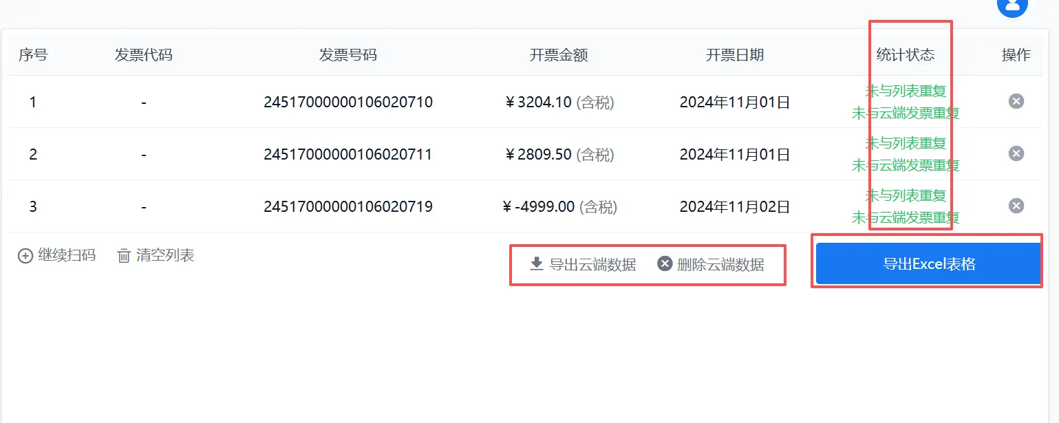 完成扫描后,系统会自动生成查重结果列表。您可以在列表中查看每一张发票的查重状态,轻松识别重复发票。如果您有需求,还可以将查重结果导出为表格,方便后续的记录和分析。