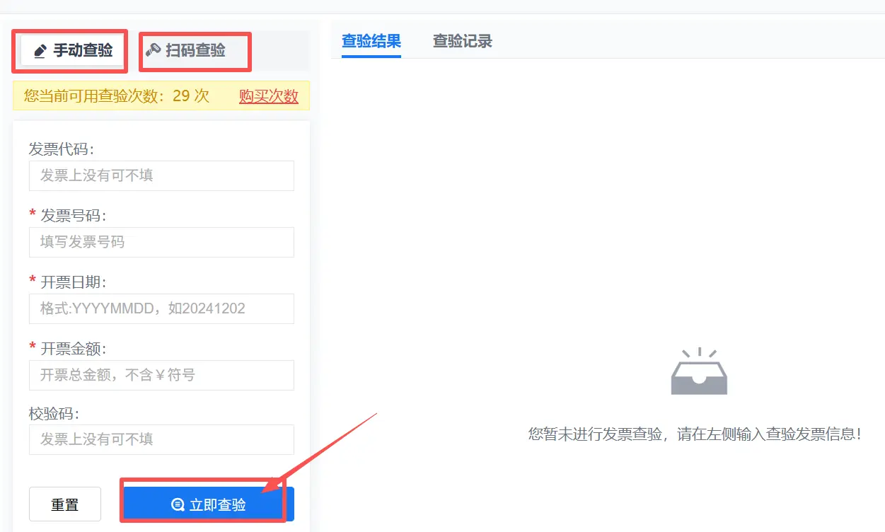 票票帮的发票查验功能是一个非常实用的工具,支持多种查验方式,包括手动查验、扫码查验以及批量上传发票文件查验。该功能的最大优势在于无需输入验证码,大大提高了工作效率。