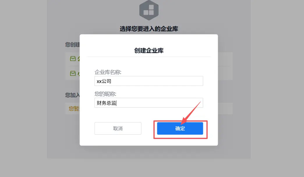 点击企业库的【创建企业库】按钮,设置企业库的相关信息点击确定即可创建企业库