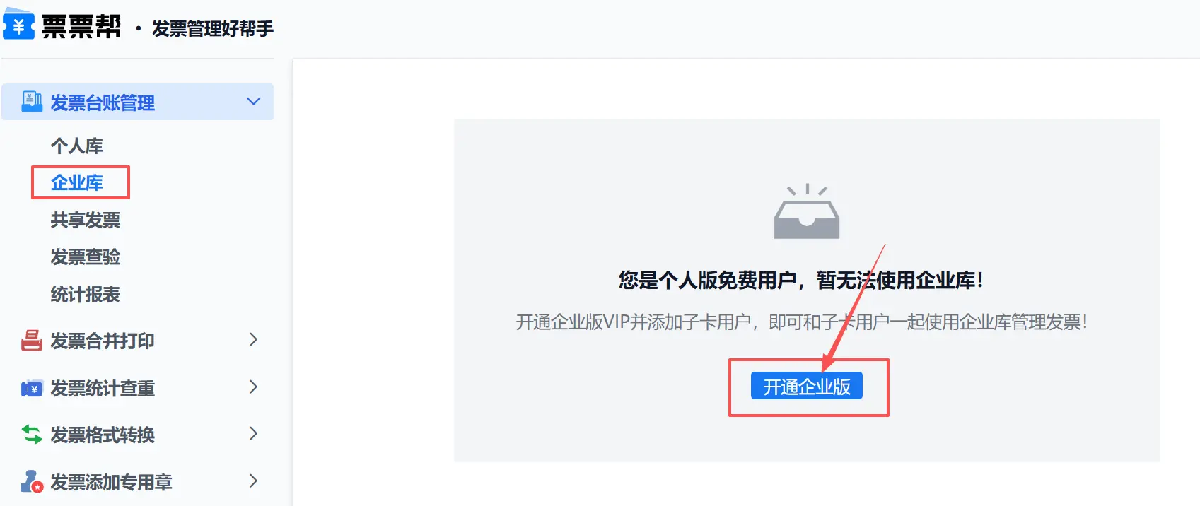 个人版会员用户:可通过升级为企业版会员开通企业库功能