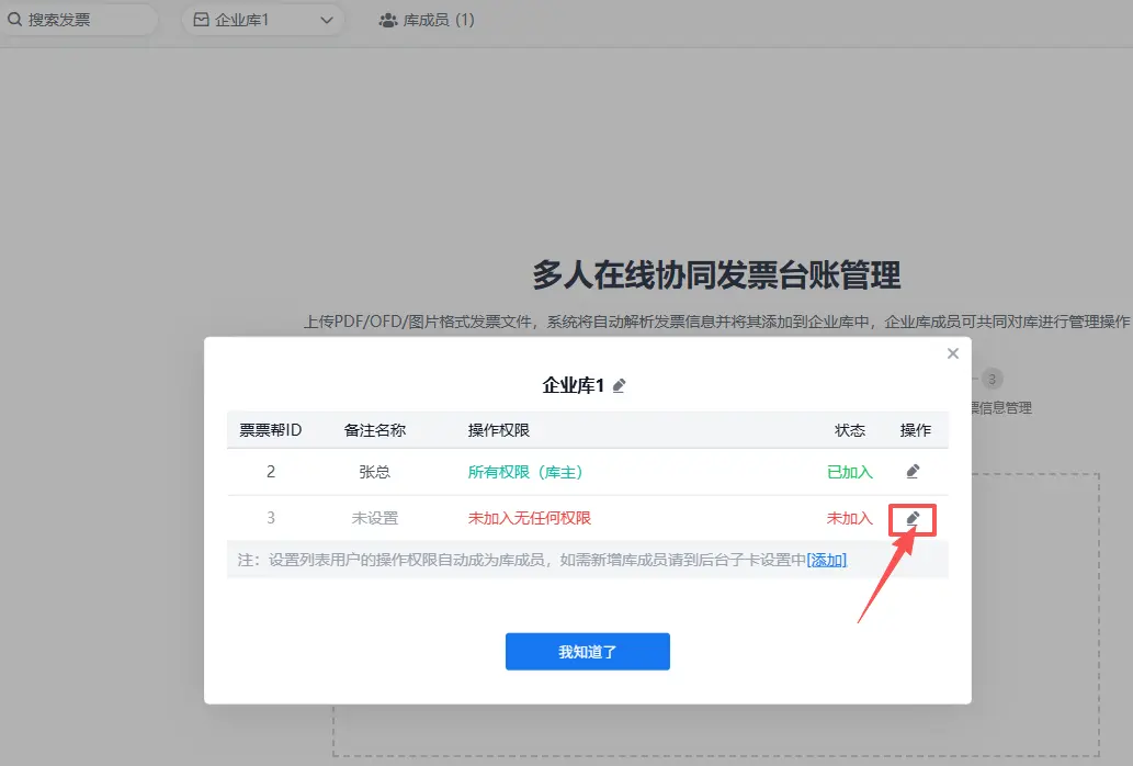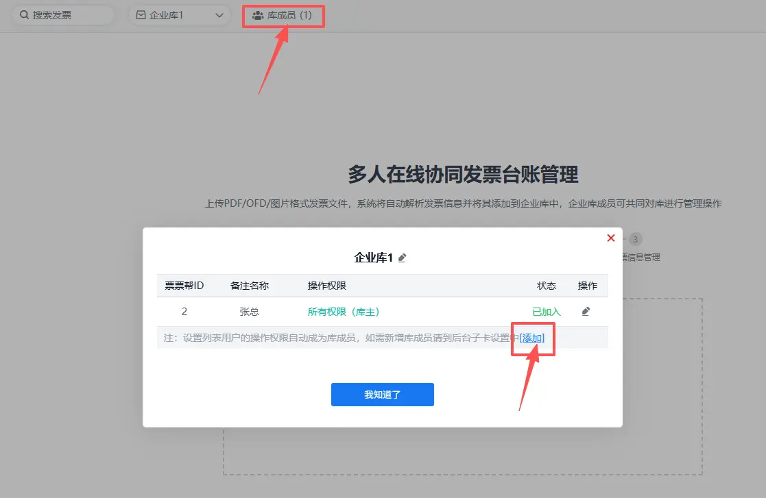 多人上传发票:企业库支持多个用户将发票上传至同一企业库,方便团队协作,提高发票管理效率。