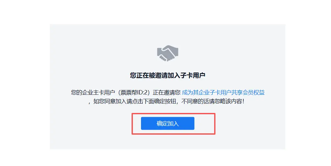 将生成的邀请链接复制给需要添加的子卡用户,被邀请的用户将此链接复制到浏览器里点击【确认加入】后即可添加完成